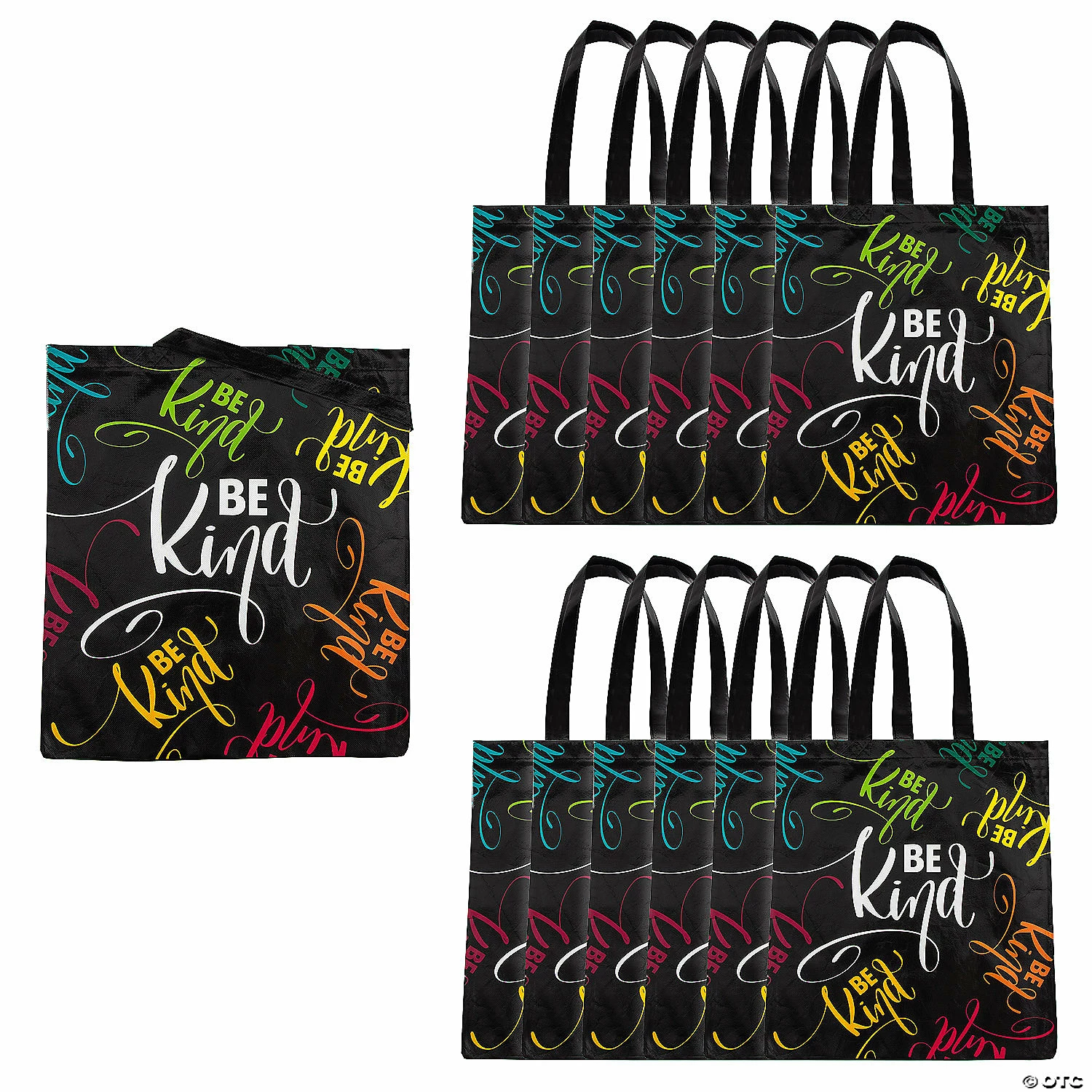 β’ Eco-Friendly: Ditch the plastic bags and go green with this eco-friendly tote bag! Mother Earth is sure to appreciate the gesture, so go ahead and gift this tote bag to your friends and family while youβre at it!β’ Durable Quality: Made of laminated cloth, this sturdy tote bag wonβt let you or your accessories down. Plus, you can easily store the reusable bag away until you need it again. β’ Travel-Friendly: No matter where your day takes you, this tote bag is sure to be a handy companion! Designed with easy-to-use straps and a spacious interior compartment, this tote bag is ready for on-the-go fun!Product Description:Be kind to the earth with reusable shopping bags with shoulder straps for easier carrying. These lightweight bags, with a colorful confetti design, promote kindness in the classroom, and are a festive and more sustainable alternative to single-use gift bags for wrapping birthday presents, as well as a useful, more environmentally friendly giveaway at conferences and events. Β© OTCSize: 15″ x 17″ with 11 1/2″ handles.Quantity: 12Material: Laminated nonwoven polypropylene.
