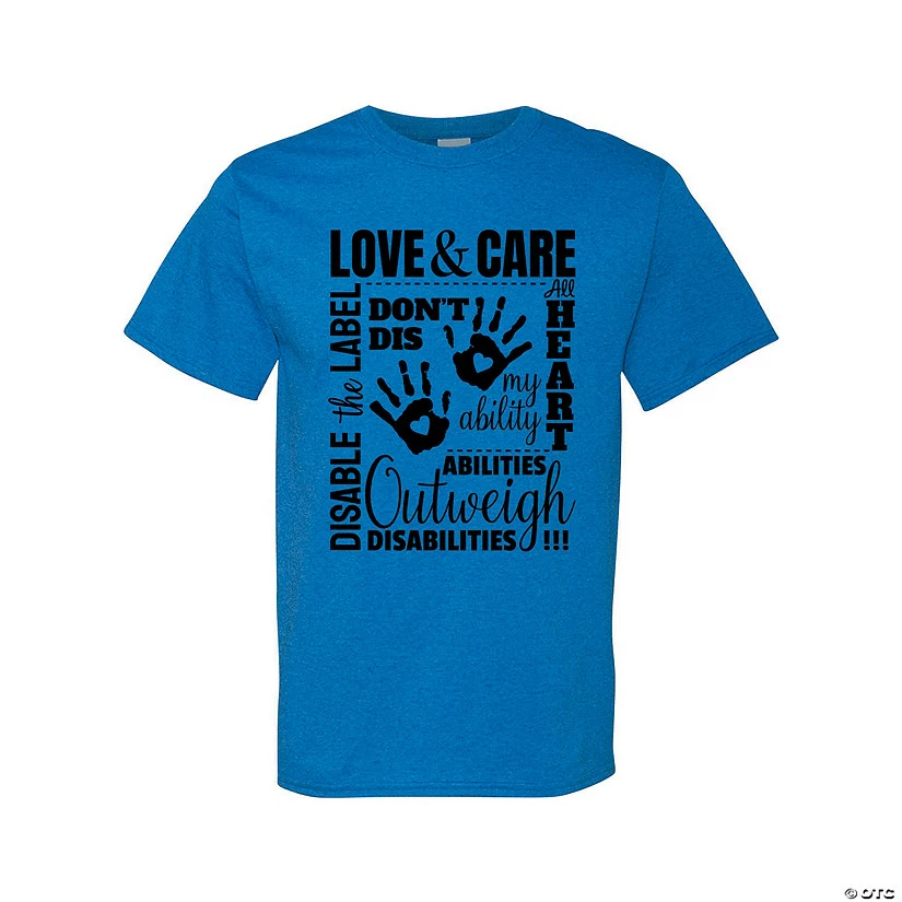 Disable the label! Advocate for a special loved one with this positive shirt about people who are differently-abled. Perfect for fundraisers, awareness events or to wear any time to spread awareness for the disabled community, this comfortable shirt has an important message that comes across loud and clear! © OTC• Brand: Fruit of the Loom• Short sleeve• 50% cotton and 50% poly• Tear away label• Double needle hemmed sleeves and bottom• Need more? With our tees, we’ve got your back (and front)! To order in bulk for any size group, just call 1-877-513-0384. Or, give us a ring if you’d like to easily customize any of our pre-printed shirts with our free design service.